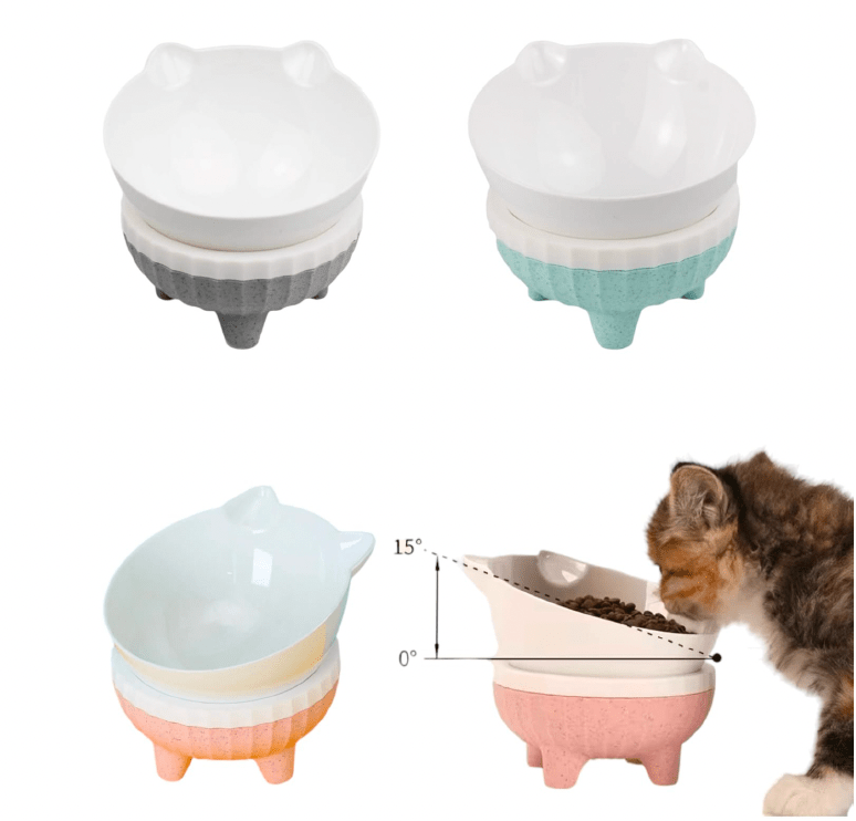 Comedero alto cara de gato con base